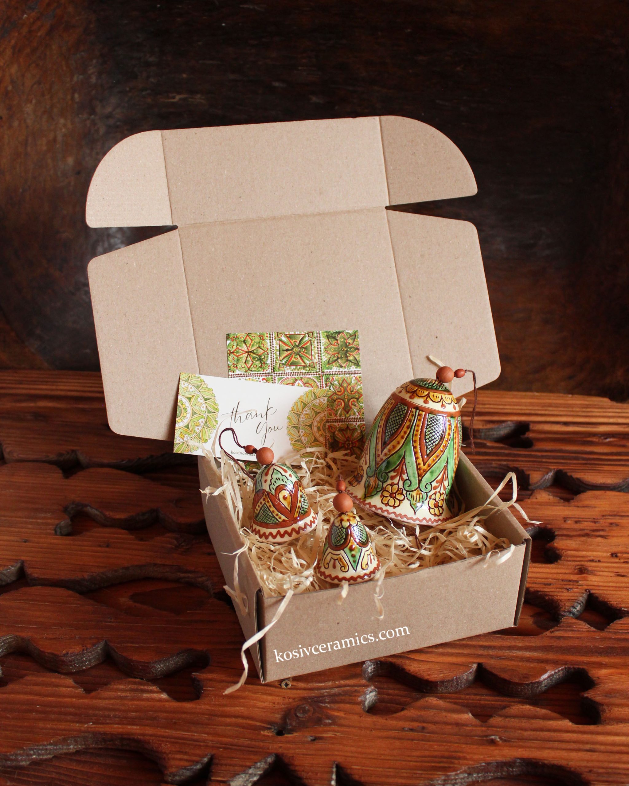 Керамічні розподільчі коробки для будинків з зовнішньою (ретро) проводкою мають діаметр. Кожна коробочка може мати різний малюнок — орнамент чи сюжет.