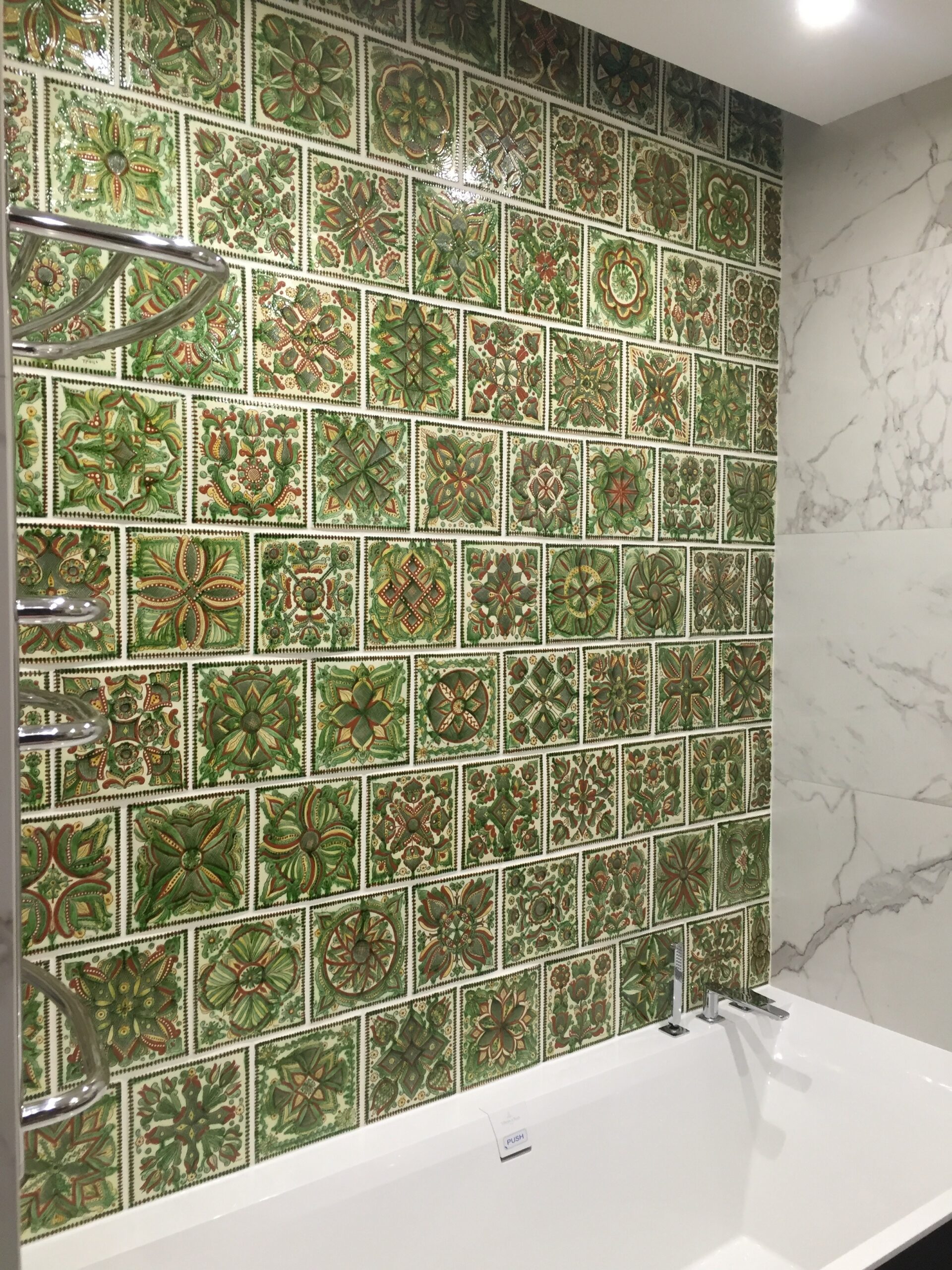 Наша плитка підходить для облицювання стін, камінів, кухонних фартухів. Також окремі плитки можна використати як вставки разом з сучасною плиткою.
