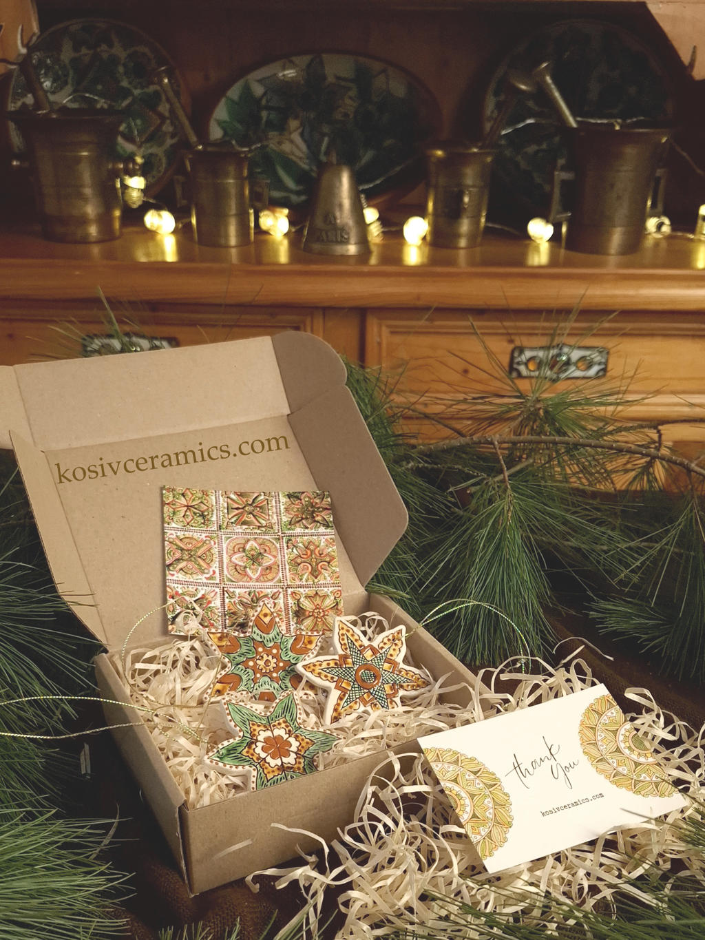 Подарунковий набір керамічних зірок ручної роботи, в одному екземплярі.